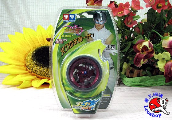 電視影集,火力少年王之相關商品,劇中人物馬凱所使用的溜溜球,直徑約62mm,重約68g,精密滾珠軸承,回收系統:外凸星紋,屬酷炫輪胎蝶翼型.