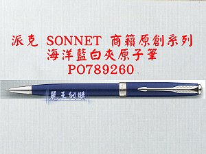 編號:62871-po789260| 派克 SONNET 商籟(原創系列) 海洋藍白夾原子筆 |