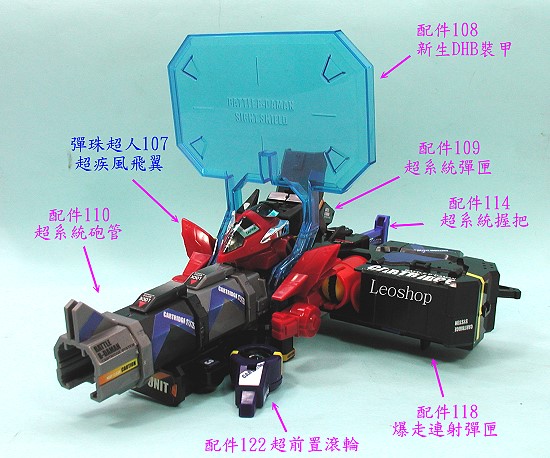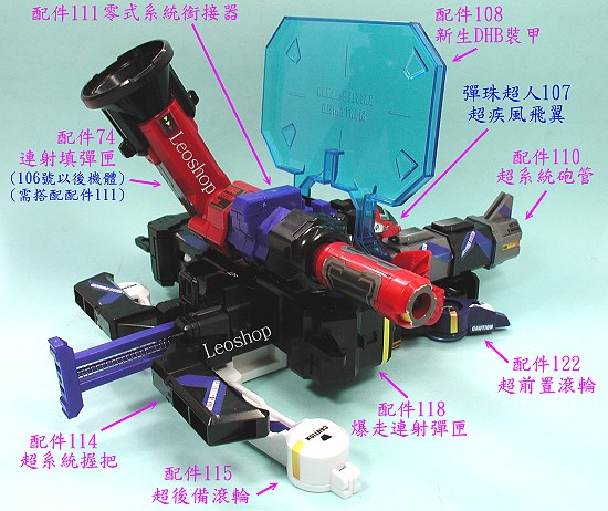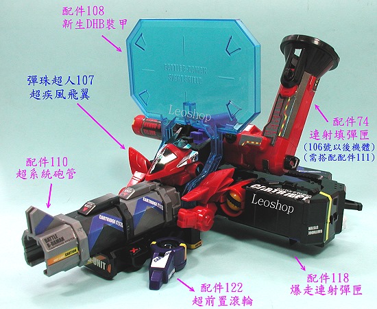 下列圖示為 彈珠超人炎魂 107 超疾風飛翼 全套裝備組合之參考,網友可依個人喜好自行增減搭配組合