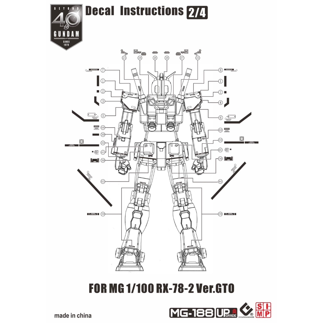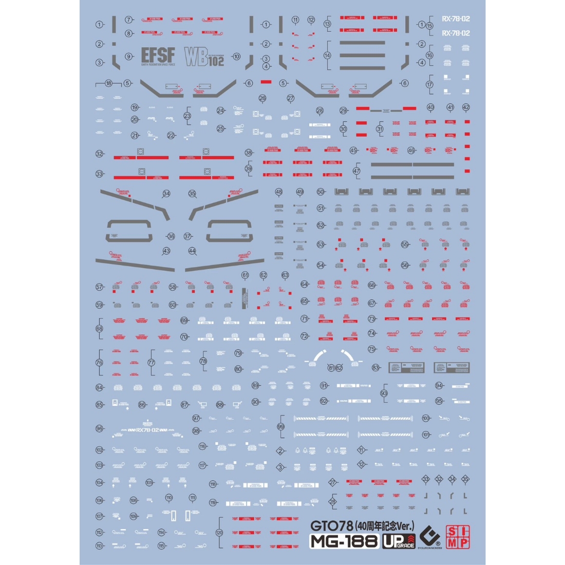 綜合品牌水貼 > EVO MG 專用水貼 1/100 RX-78-2 鋼彈 初鋼 The Origin Ver. 40周年紀念版 螢光水貼
